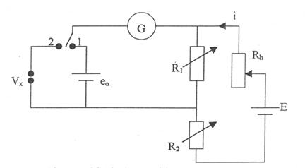 La méthode consiste à réaliser une tension connue réglable que l'on oppose à la tension à mesurer Vx à travers un galvanomètre.