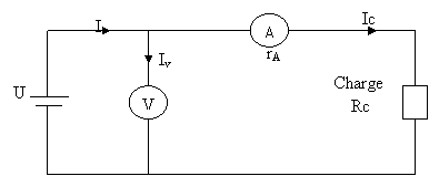 Ic : Courant dans la charge Uc : tension aux bornes de la charge Uv : tension aux bornes du voltmètres, Pc : puissance consommée par la charge |