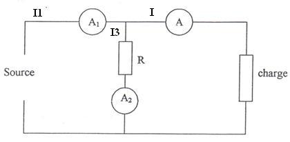 Le principe de cette méthode consiste à brancher trois ampèremètres suivant la configuration de la figure xx où R représente une résistance étalon de grande précision.