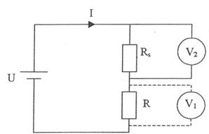 Si on tient compte de la résistance interne des voltmètres Rv et de la résistance interne r de la source de tension (c'est le même voltmètre que lon place successivement sur R puis sur Rs).