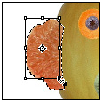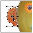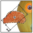 - Si nécessaire, choisissez Edition > Transformation libre, faites pivoter l'oreille pour la coller contre le bord du melon et appuyez sur Entrée (Windows) ou Retour (Macintosh) afin d'achever la transformation.