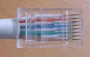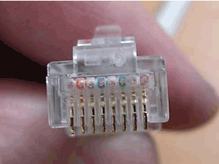 Pour un câble croisé il faut bien positionner les 8 conducteurs et les mettre dans le bon ordre pour les deux extrémités :