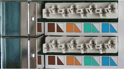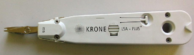 Ce collier doit être serré avec une pince adaptée. Sertissage des conducteurs : Pour réaliser cette opération, il est nécessaire de disposer d'un outil spécial, dont voici un modèle :![]() Cet outil est destiné à faire correctement pénétrer le conducteur dans la tulipe auto-dénudante, et à sectionner le bout de conducteur excédentaire. Il suffit ensuite de faire pénétrer un à un les conducteurs dans leur tulipe, en respectant le code de couleurs indiqué sur l'étiquette. ![]() A la fin de l'opération, la prise totalement câblée doit ressembler à ceci. ![]() Une fois l'opération achevée pour toutes les prises utilisées sur la rampe, il faut refermer le châssis et le fixer sur la baie. |