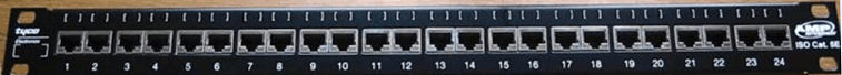 • Un panneau de brassage. L’opération de brassage consiste à relier les ports des matériels de réseau ou de téléphonie (switchs, hubs, modem...) aux arrivées des câbles du réseau. Généralement en reliant ces ports à des connecteurs situés sur une baie de brassage à l'aide d'un cordon court. Le panneau de brassage est un élément passif du réseau, il concentre des prises RJ45 qui correspond à chaque poste du réseau. Ce panneau est placé dans la baie de brassage et permet de connecter chaque poste de travail au switch (hub ou concentrateur) afin qu'il soit relié au réseau. Donc c'est juste une "planche en fer" percé de 8, 16, 32....trous afin d'y fixer des prises RJ45 qui sont reliées via un câble (Jarretière de brassage) aux prises RJ45 du commutateur. Les panneaux de brassage comportent en face avants des ports qui se montent par l'arrière pour la connexion avec la prise murale à travers un faisceau de câble (Rocade). ![]() Schéma représentatif d’un raccordement d’une baie de brassage ![]() Armoire de brassage En haut de l'illustration, nous voyons les faisceaux de câbles (Rocades) qui arrivent des différentes salles équipées de postes informatiques. Ces câbles sont connectés 4 rangées de prises RJ 45, de façon fixe. Ces connexions ne se voient pas sur cette illustration. Les câbles que nous voyons ici sont des bretelles de raccordement (Jarretière) qui relient chaque arrivée à une entrée de l'un des cinq équipements actifs que l'on observe dans le bas de l'image. 3) Câblage du baie de brassage :a. La rampe de prises : Voici une rampe de 24 prises pour une baie de brassage : ![]() Vue de l'intérieur : ![]() ![]() La vue montre les borniers de deux prises adjacentes. Le câblage fixe se fait généralement avec des conducteurs rigides, plus solide et moins onéreux que le câble souple, que l'on réserve aux bretelles de raccordement. ![]() Sur l'illustration, on distingue de bas en haut: