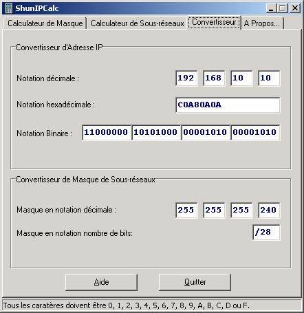 Convertisseur Hexa/Binaire d’adresse IP et de Masque