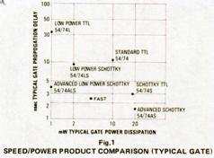 Toutes les familles TTL présentent d'excellentes caractéristiques, Il est cependant important de faire des distinctions entre elles sur certains points essentiels : à savoir la dissipation de puissance, la vitesse et la plus ou moins grande sensibilité aux charges capacitives. La figure 1 illustre la relation entre la dissipation de puissance et la vitesse (temps de propagation). Pour différencier les familles, on utilise les indications suivantes :