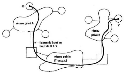 Le service de transport permet la communication de deux utilisateurs situés dans différents systèmes indépendamment des caractéristiques du ou des réseaux sur lequel s'effectue réellement le transfert des données. En particulier, il sera impossible de savoir à un utilisateur du service de transport si un ou plusieurs réseaux publics sont utilisés ou si des liaisons téléphoniques directes sont mises en jeu dans la communication qui l'intéresse. La figure 10.1 montre un exemple de connexion de transport mettant en jeu plusieurs réseaux mis bout à bout (on dit concaténés) ; ce sera le rôle de la couche transport que de réaliser l'exploitation de la liaison de transport établie entre X et Y. Les problèmes inhérents au routage et à la concaténation des liaisons de réseau seront pris en compte par la couche 3. De plus, dans une connexion de transport, les informations devront être délivrées dans l'ordre, sans perte ni duplication.
