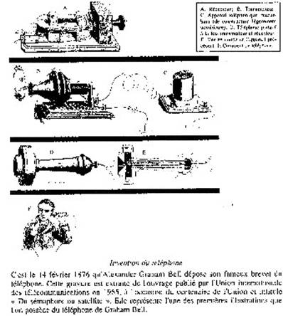 1876 Un professeur d'acoustique, Alexander Graham Bell, devançant de peu son compatriote Elisha Gray, dépose, le 14 février de cette année, son célèbre brevet sur le téléphone.