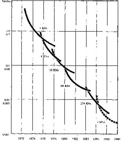 Figure 1. 1. : Evolution du prix du bit de mémoire (yen/bit)